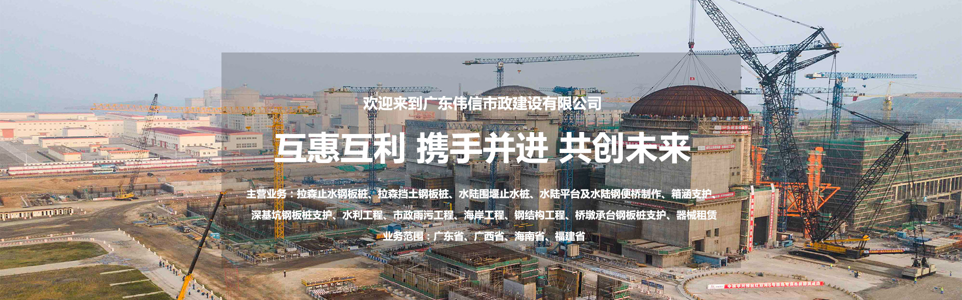 廣東偉信市政建設(shè)有限公司湛江分公司棣屬于廣東偉信市政建設(shè)有限公司,是以拉森鋼板樁施工為主營業(yè)務(wù)的土建及市政項目的大型施工企業(yè),專業(yè)分包各種拉森鋼板樁工程項目及各類土建基礎(chǔ)工程,注冊資金1000萬元。至今為止我公司擁有200多名技術(shù)精英,二十年來打造過包括湛江高鐵西站項目、湛江鋼鐵基地項目、中科合資廣東煉化一體化項目等大量優(yōu)質(zhì)工程。